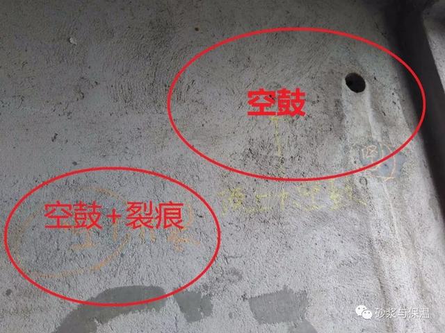 空鼓產(chǎn)生的原因主要有四個(gè):一是基層墻體表面未處理。墻體表面黏著的塵土、殘余砂漿和澆筑時(shí)的隔離劑未清理干凈,光滑的混凝土表面未涂刷界面劑或進(jìn)行噴漿拉毛,抹灰前未進(jìn)行提前灑水充分潤(rùn)濕等。二是墻體養(yǎng)護(hù)時(shí)間不夠就急于抹灰。墻體未進(jìn)行充分變形就開始抹灰,基層與抹灰層收縮不一致導(dǎo)致空鼓。三是單層抹灰過厚。墻體平整度不好或有缺損時(shí),沒有提前處理,抹灰時(shí)急于求成,一次成活,抹灰層過厚,造成其收縮應(yīng)力大于砂漿黏結(jié)力,產(chǎn)生空鼓。四是抹灰材料使用不當(dāng)。抹灰砂漿強(qiáng)度與基層墻體強(qiáng)度不匹配,收縮率相差過大[2]。
